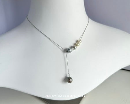 7-10mm 水滴形巴洛克日本akoya +大溪地,天然無調漸變色,925純銀頸鏈,針鏈尾,上面珍珠部份可以隨意加減換珍珠,頸鏈嘅長度同埋吊墜吊落嚟嘅位置都可以隨意調節,大約40-50cm