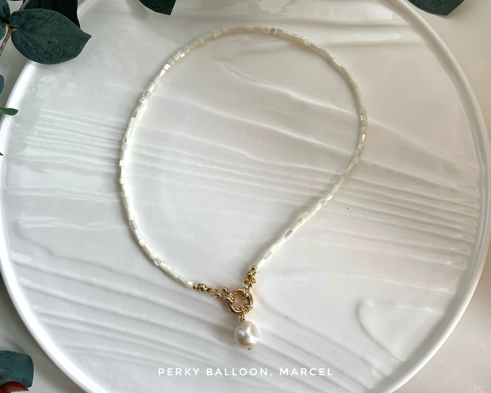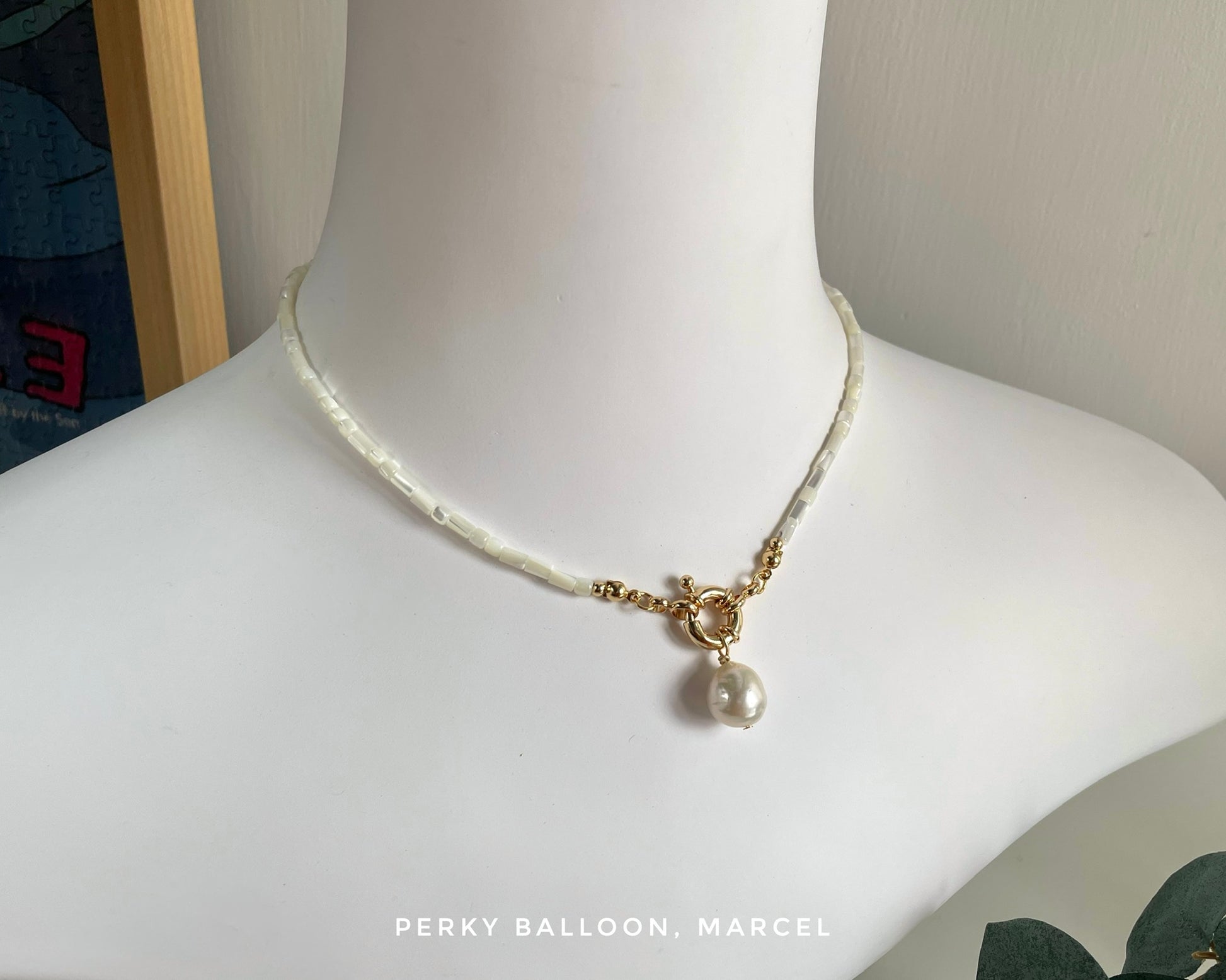 11-12mm 巴洛克淡水珍珠,4mm 貝殼珠珠,夏天襯埋白色裙仔靚靚,頸鏈連扣長約40cm