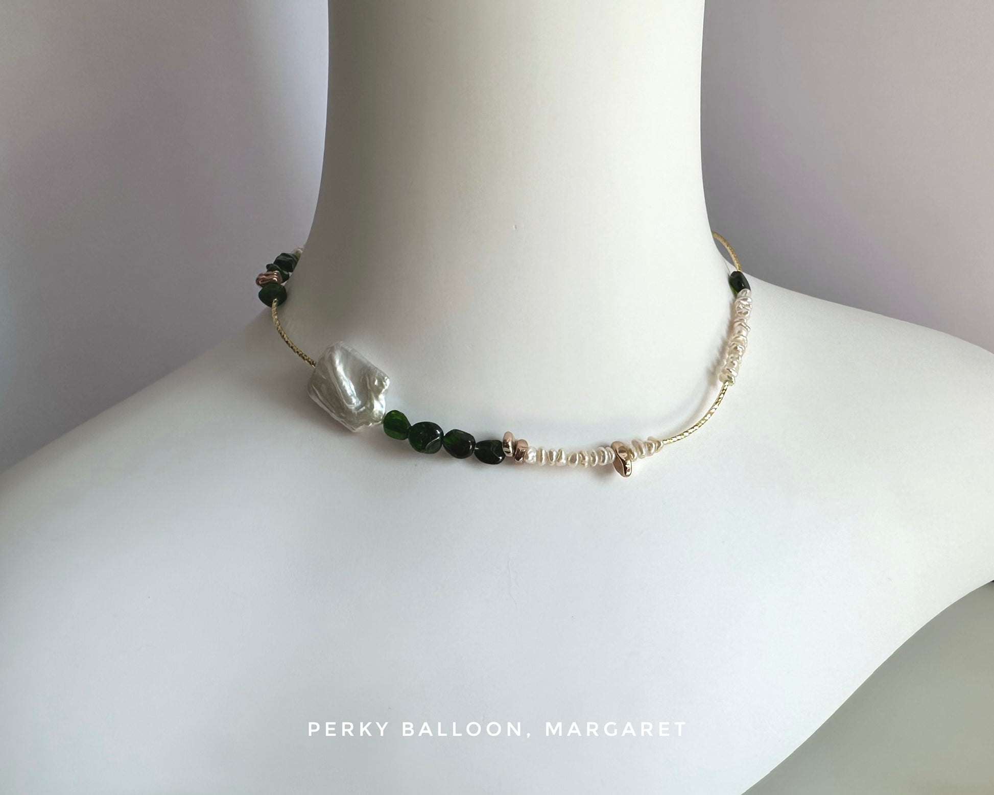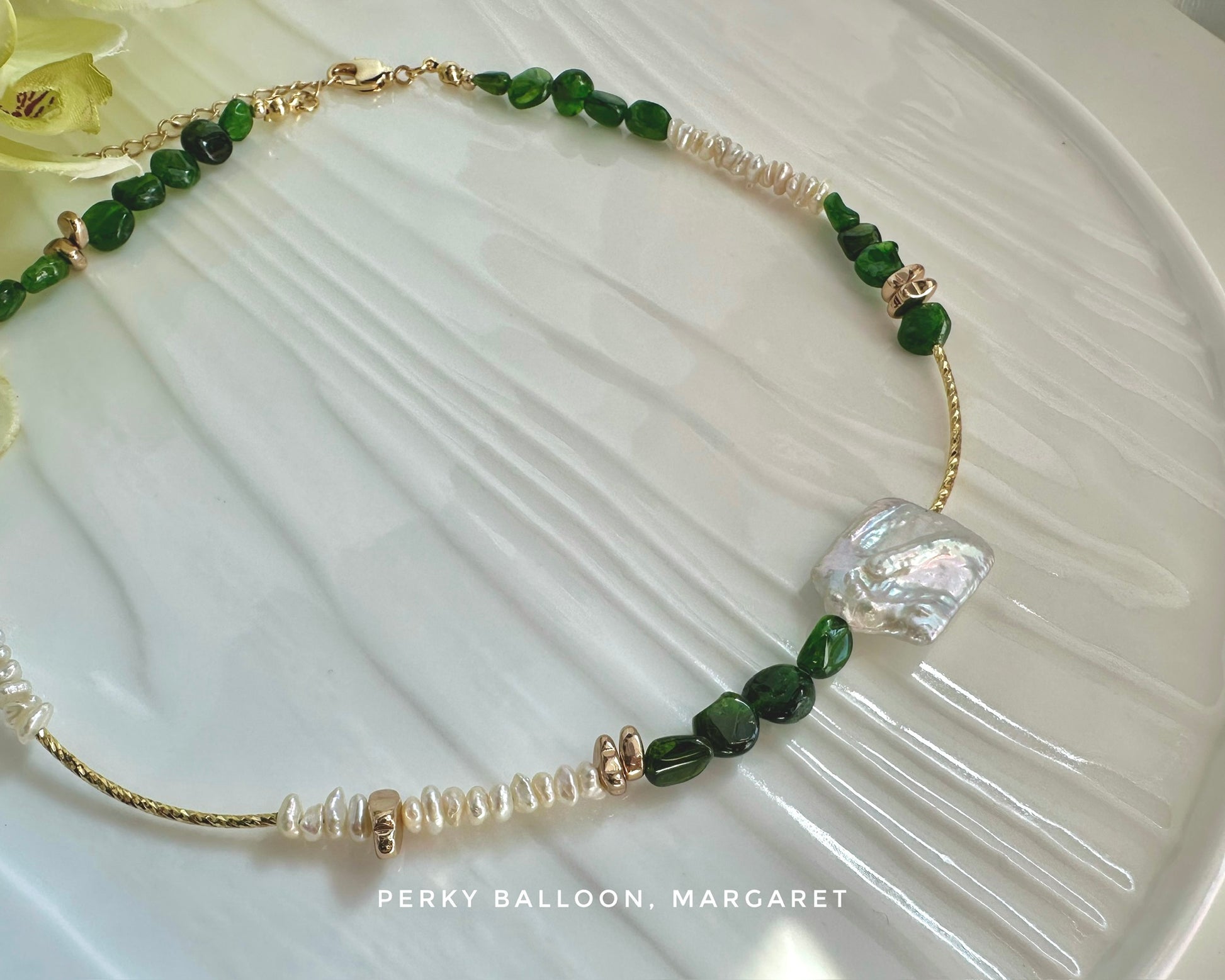 5-18 mm巴洛克淡水珍珠,綠透輝石,頸鏈連扣長約40 +5 cm