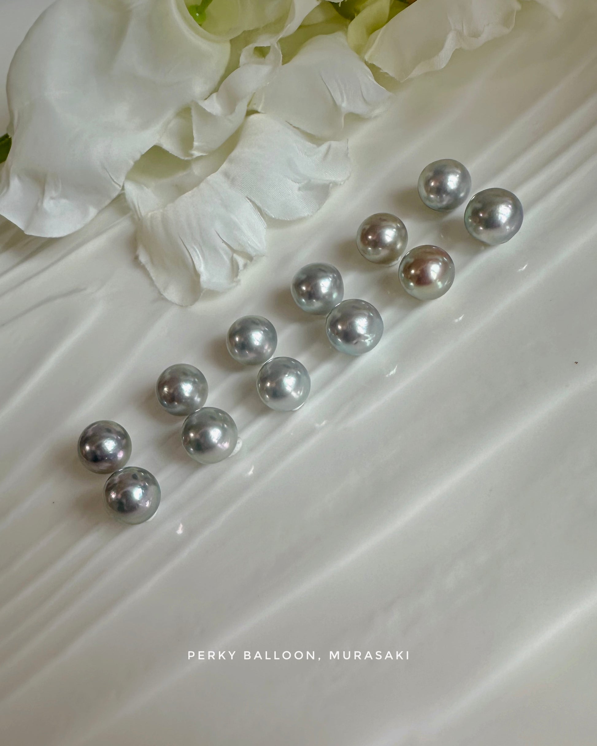 8-8.5mm maxi size 近圓形日本 Akoya,天然冰川灰藍色,天然色天然色天然色,超強光,小小瑕,個別珠珠側底可能有點不平滑,上耳睇唔到,極高性價比,配925純銀耳釘 / 黃銅鍍金螺絲耳夾