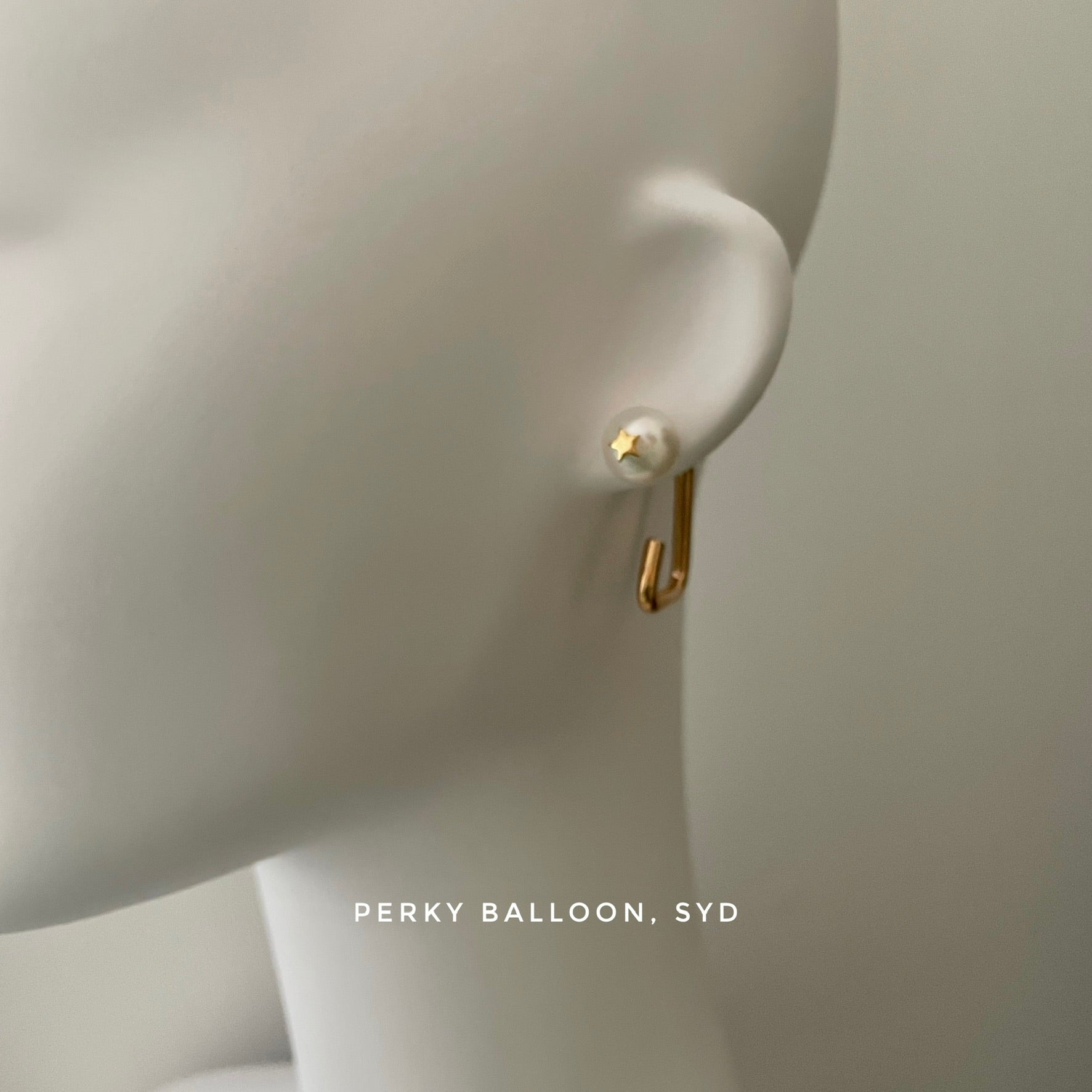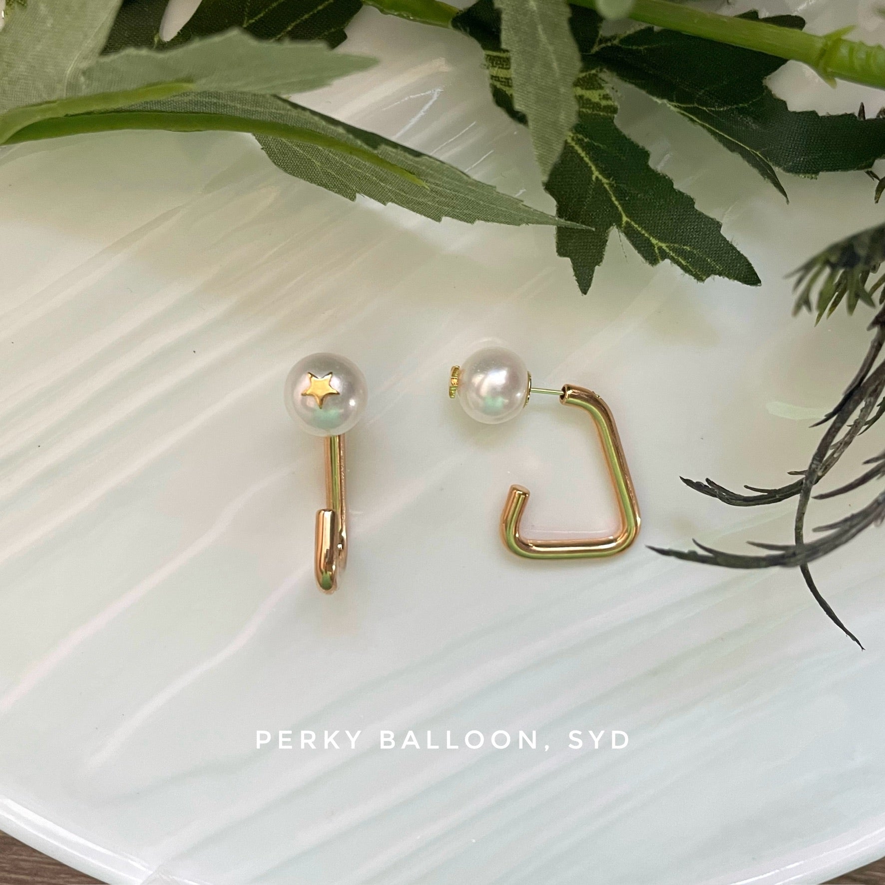 11 mm巴洛克淡水珍珠,黃銅鍍金耳釘+背托,背托可以任意配搭其他耳環,整體高約2.6 cm