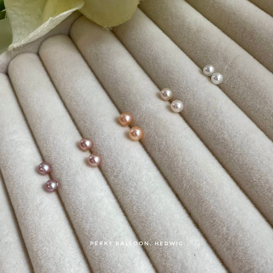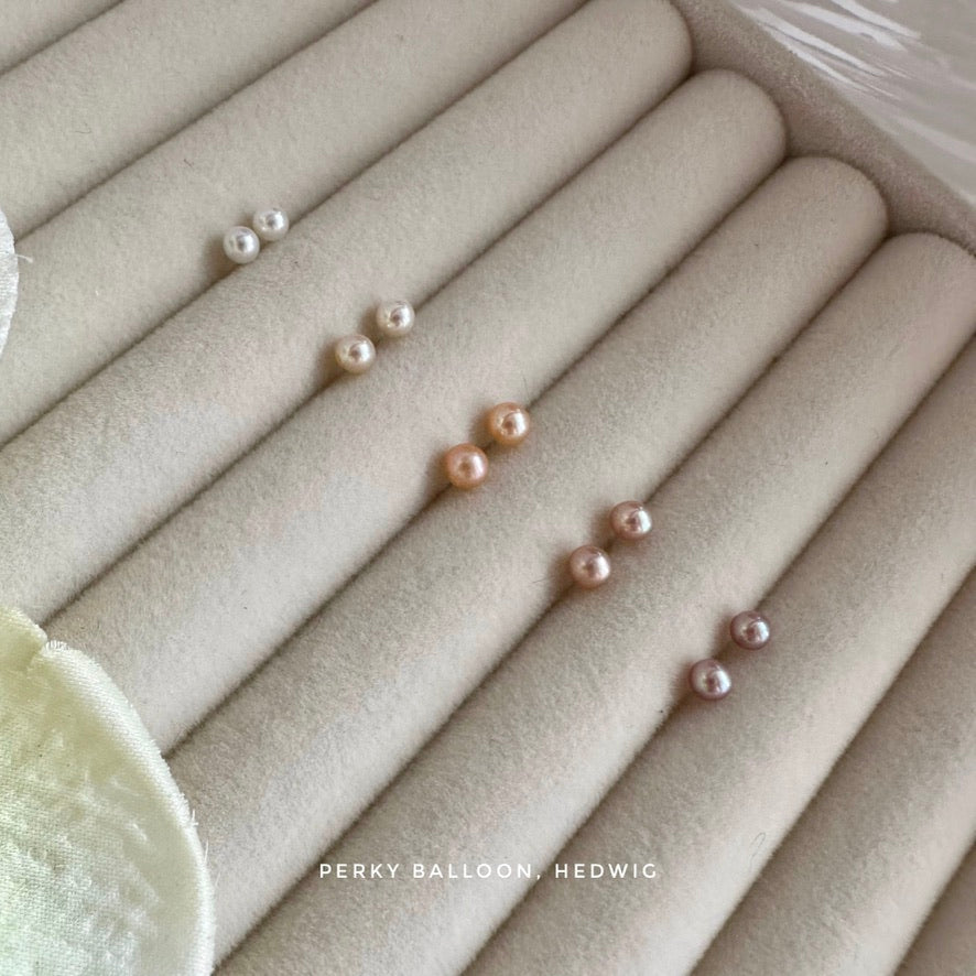 3-4mm 近圓形迷你淡水珍珠,極細粒,強光近無瑕,配925純銀耳釘/日本透明樹脂耳夾,顏色sample上至下:白/香檳金/粉橙/粉紅/粉紫