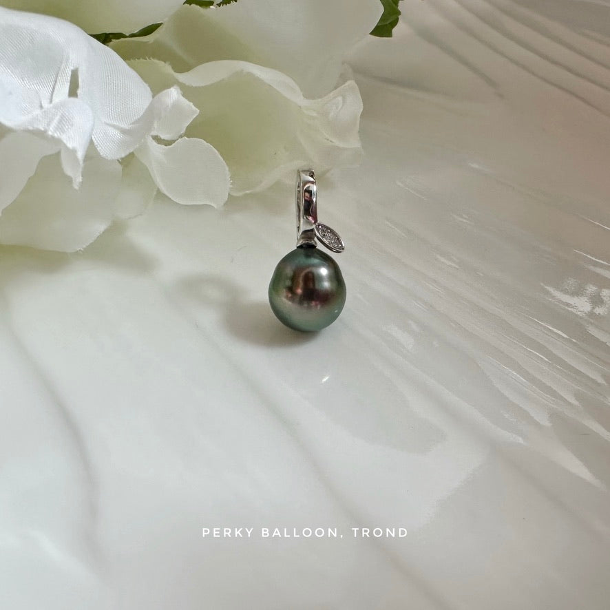 10 x11mm巴洛克大溪地珍珠,灰綠色啤梨仔形狀 ,925銀鍍金小樹葉吊墜扣,可以自由打開配襯頸鏈,整體高約1.9cm