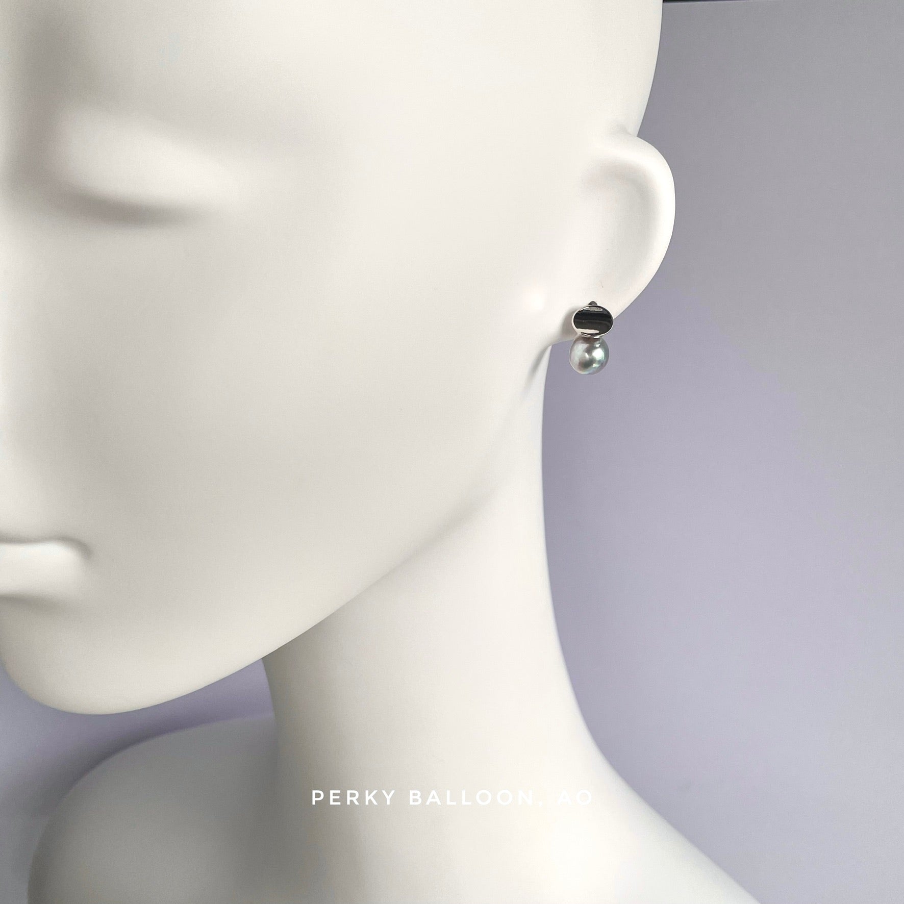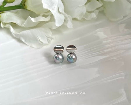 8-9 mm近圓形巴洛克日本akoya,高級感灰藍色帶幻彩光,天然色天然色天然色 ,灰色有咁大尺寸唔容易呀🤧925 純銀/純銀鍍金耳釘,整體高度大約1.5cm