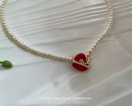 4-5mm 近圓形淡水珍珠,心心toggle 扣,頸鏈長度大約40 cm