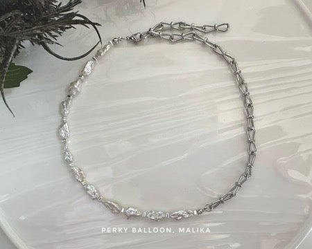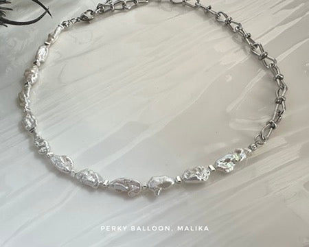 男生快啲望過嚟!5-7mm巴洛克淡水珍珠,白色透幻彩光,罕有天然色,不鏽鋼頸鏈,長度可以自由扣,最長45 cm,公仔影相效果大約40 cm