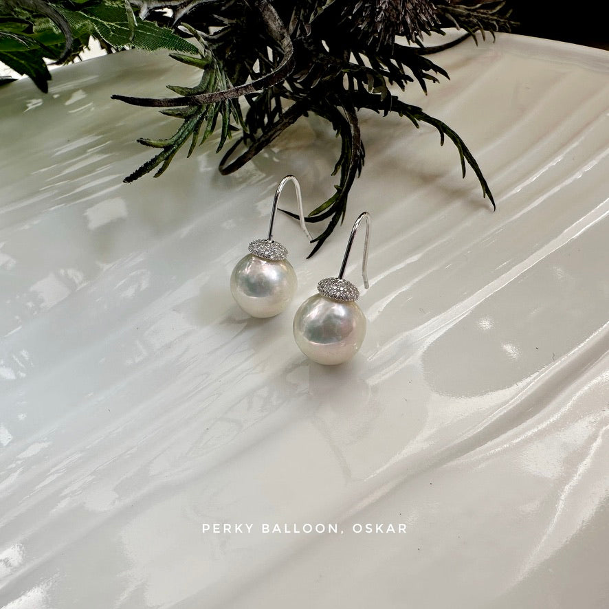 ~10mm 近圓形小水滴淡水珍珠,幻彩金屬光澤,925純銀鑲鋯石耳勾,斯文大氣款式,整體高度大約2cm