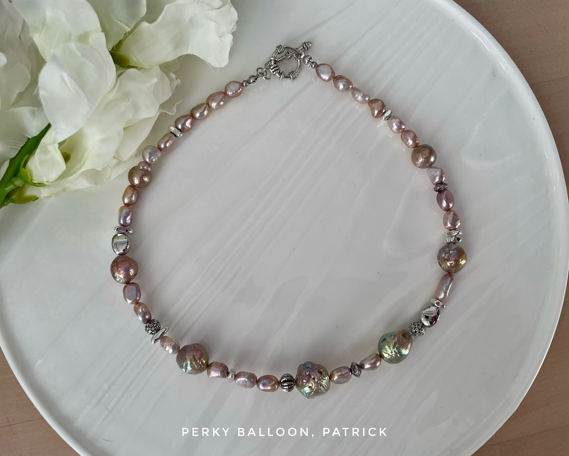 7-14 mm超巴洛克淡水珍珠,激罕天然淺綠色光,萬中無一嘅顏色,頸鏈連扣長約42cm