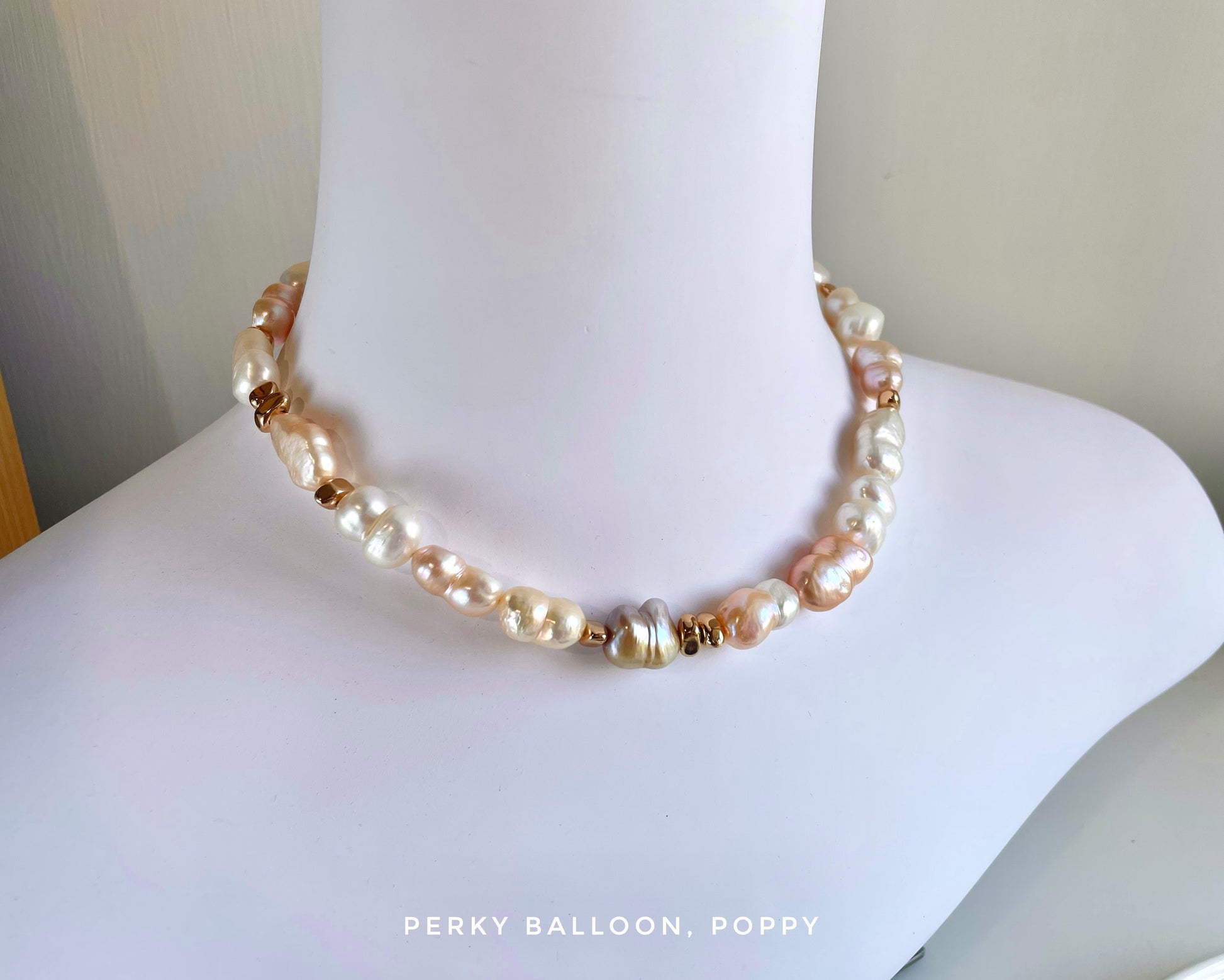 10-13 mm巴洛克淡水珍珠,天然花生仔形狀,上圖用咗彩色珍珠,亦可訂做全白version,頸鏈連扣長大約42 cm