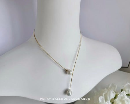 10-11 mm巴洛克淡水珍珠,金色日本鋼絲,頸鏈上面粒珍珠其實可以滑動,水滴珠套入去做一個修長Y字設計,非常簡單隨性嘅款式,因為珍珠從來就係咁隨性嘅寶石,頸鏈整體長度大約48 cm