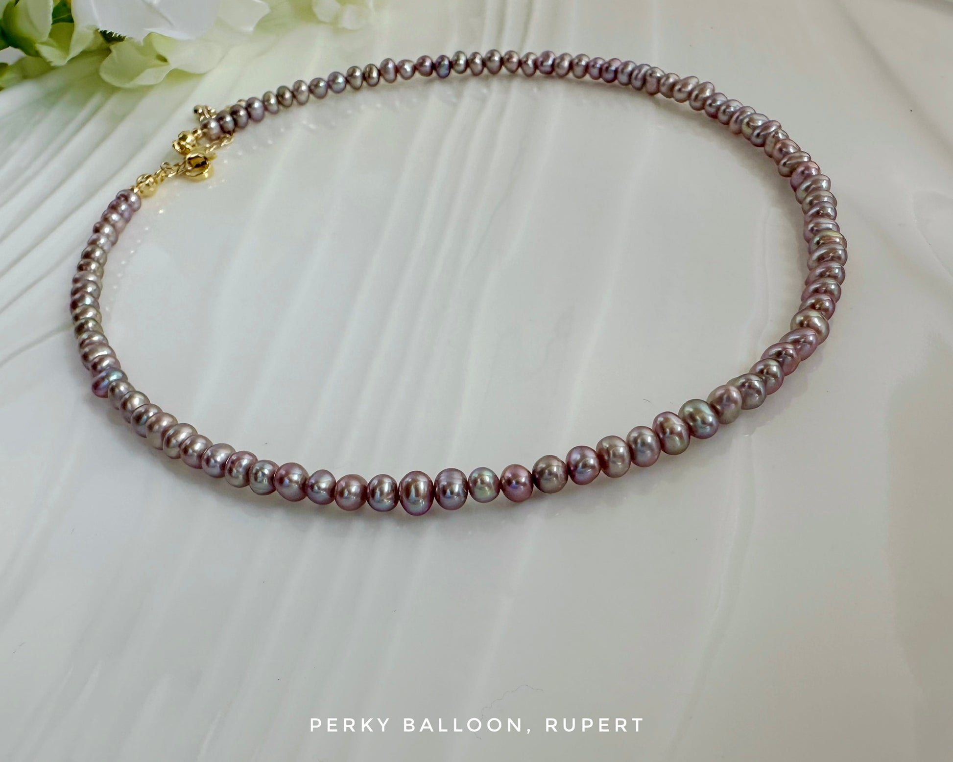 4.5-5 mm橢圓形淡水珍珠,天然深紫色,帶藍綠色幻彩,好少有咁樣嘅幻彩色🥹頸鏈連扣長度大約38+5 cm