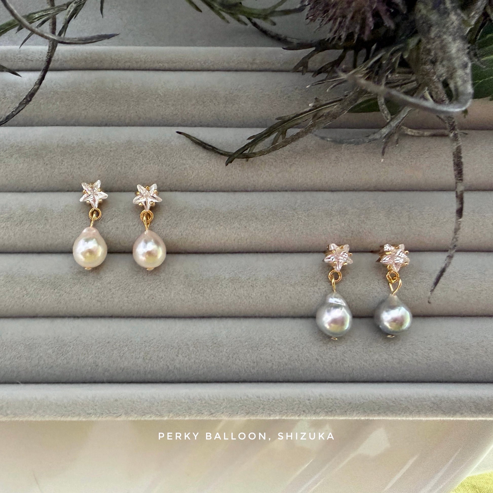 7-8mm水滴形巴洛克日本Akoya,可以揀白色/灰藍色,黃銅鍍金鑲鋯石星星耳釘,整體長度大約2cm