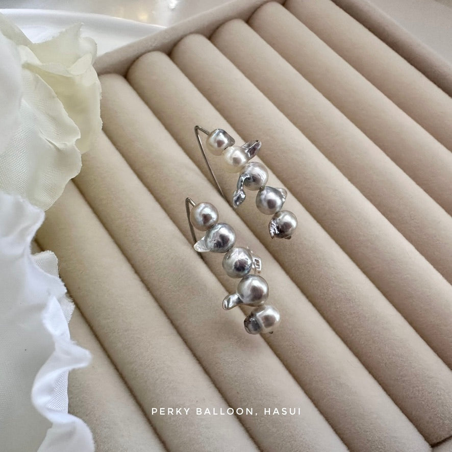 5-6mm巴洛克日本Akoya,天然灰色小金魚形狀,不鏽鋼/不鏽鋼鍍金簡約耳勾,上耳效果清爽活潑🐳整體長度大約3cm