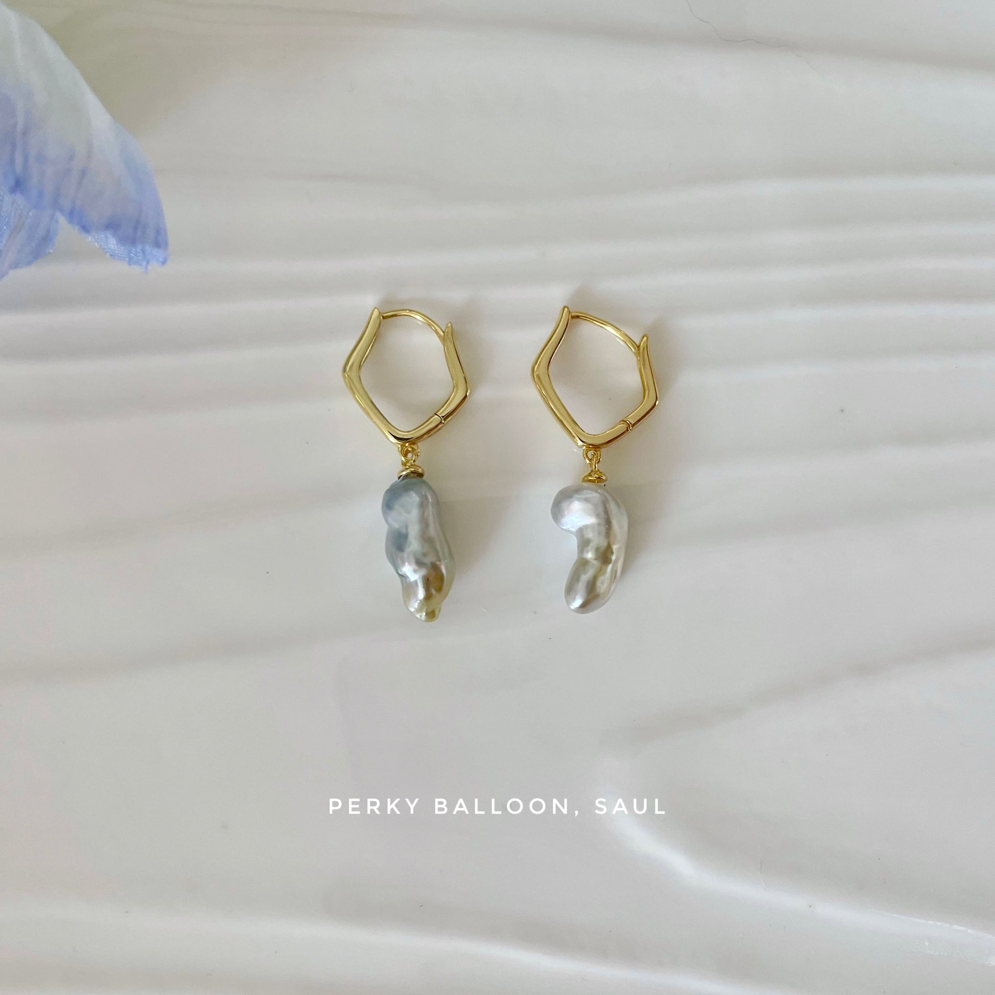6×14 mm南洋金珠keshi,圖片呢一對顏色好特別,因為係灰藍帶金,925純銀鍍金耳扣,整體長度大約3.2 cm