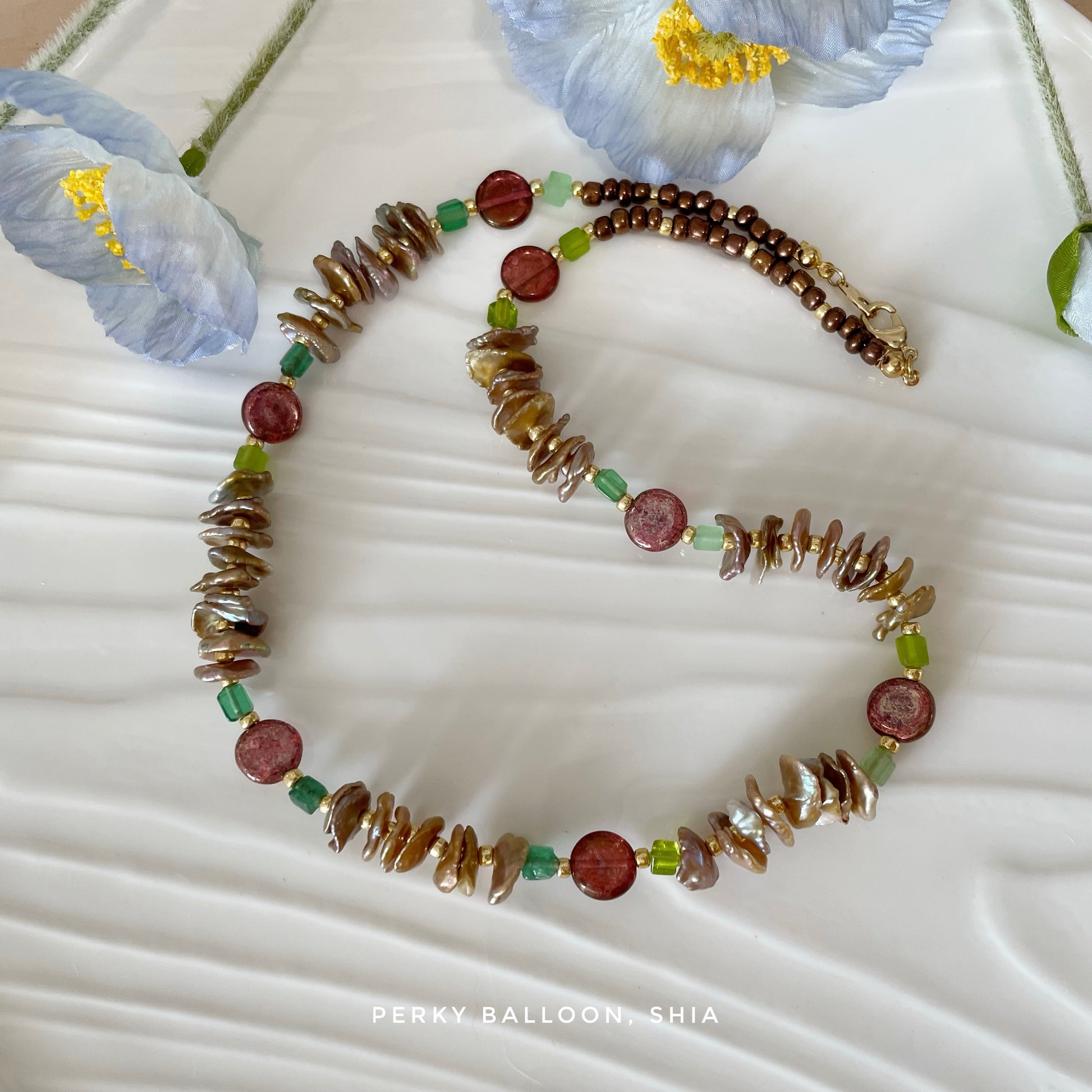 9-10mm 古銅色花瓣形珍珠,好少見嘅天然色👼🏻+日本玻璃珠,頸鏈連扣長約50cm