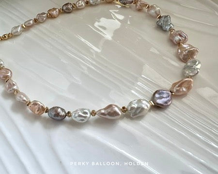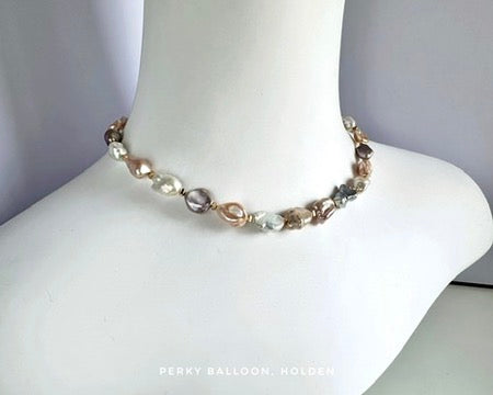 7-12 mm巴洛克小石頭形狀淡水珍珠,幻彩天然色,強金屬光澤,配戴效果非常華麗,頸鏈連扣長度大約40+5 cm