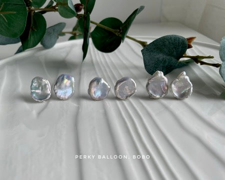 14-15mm 花瓣形淡水珍珠,天然幻彩光,有橙色/白色/紫色🥹配925純銀耳釘 / 黃銅鍍金螺絲耳夾