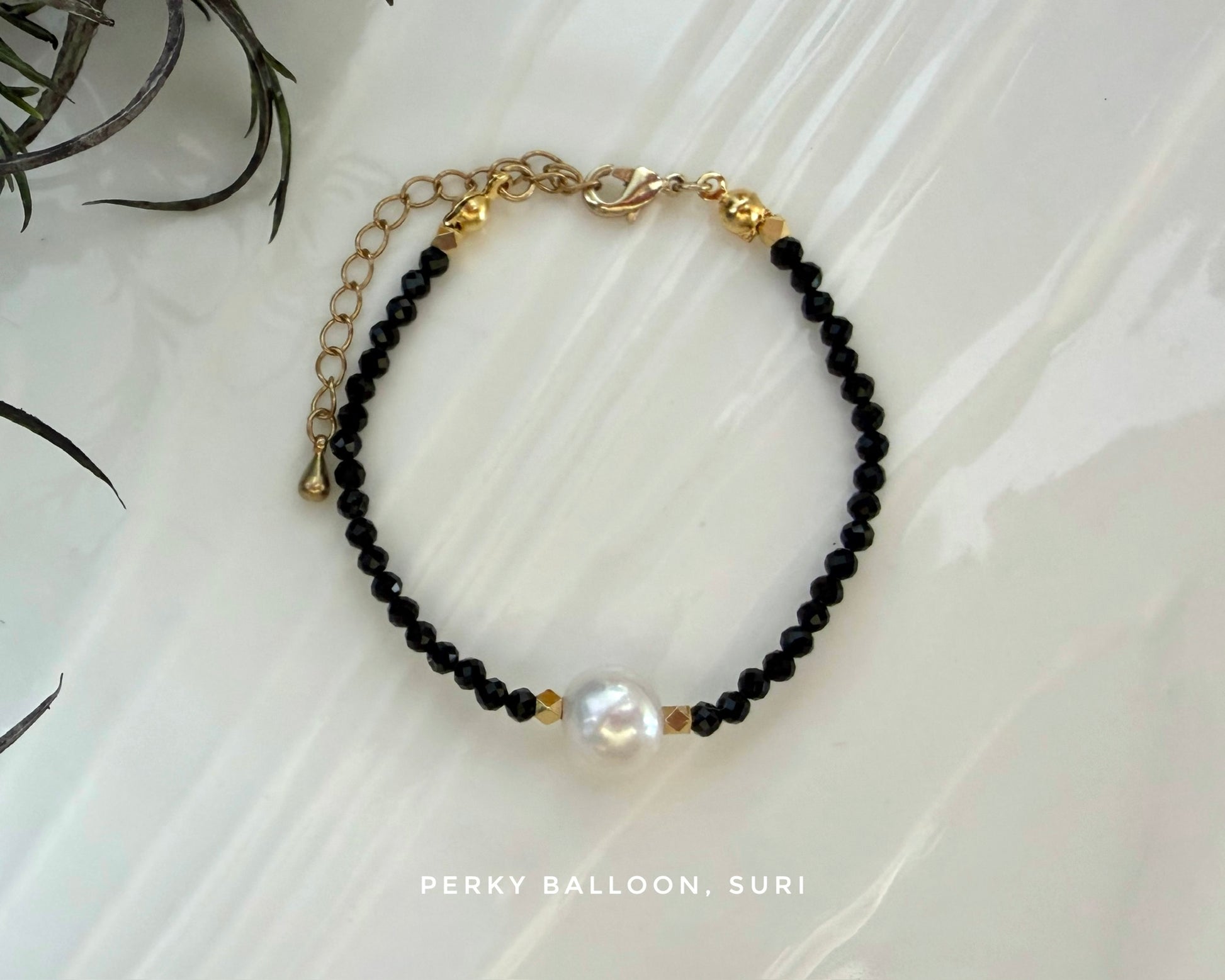 ~10 mm近圓形淡水珍珠+ 3mm黑尖晶,清爽簡約嘅黑白配,手鏈連扣長大約15+5 cm