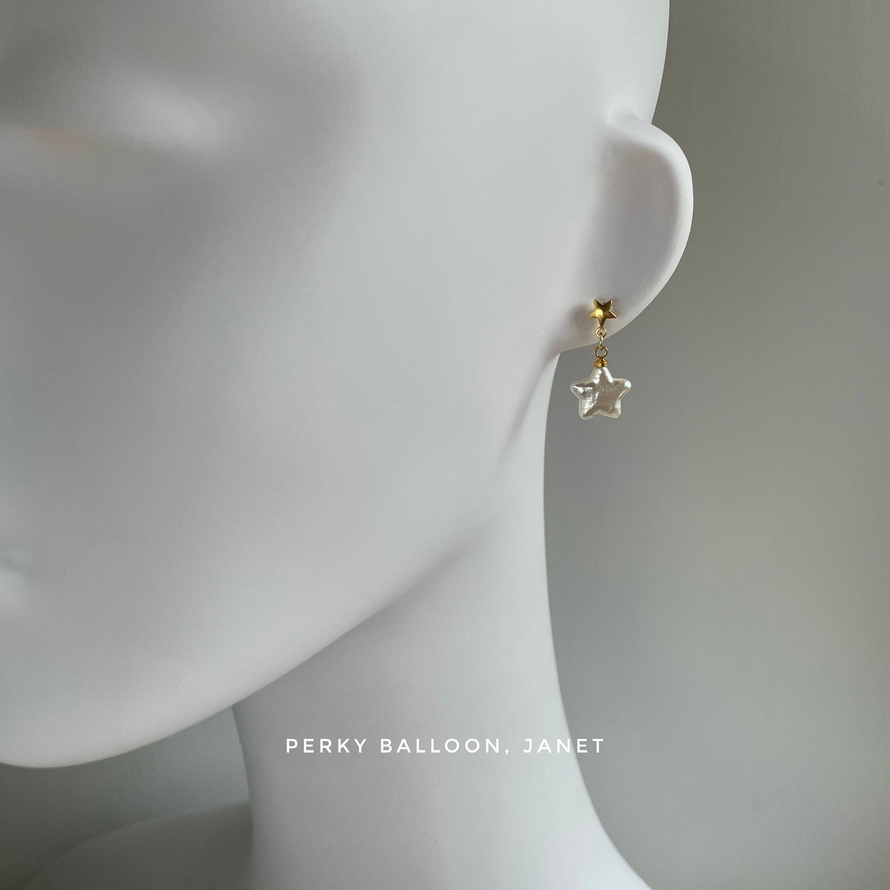 11 mm星星形淡水珍珠,黃銅鍍金星星耳釘,整體高約2.2cm