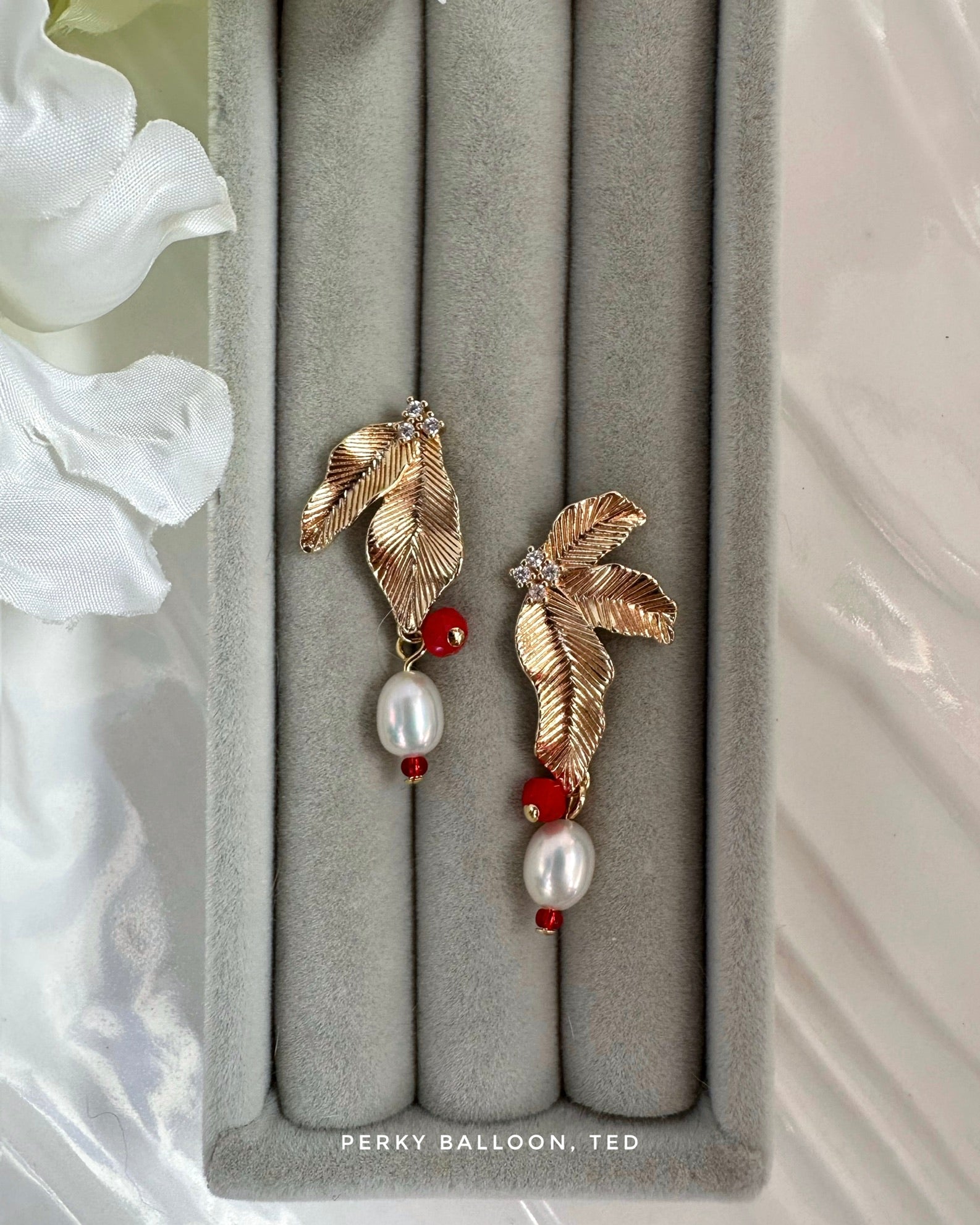 6-7mm水滴形淡水珍珠+人造水晶,黃銅鍍金左右不對稱耳釘,耳針部份係925銀鍍金,整體長度大約3 cm/4 cm