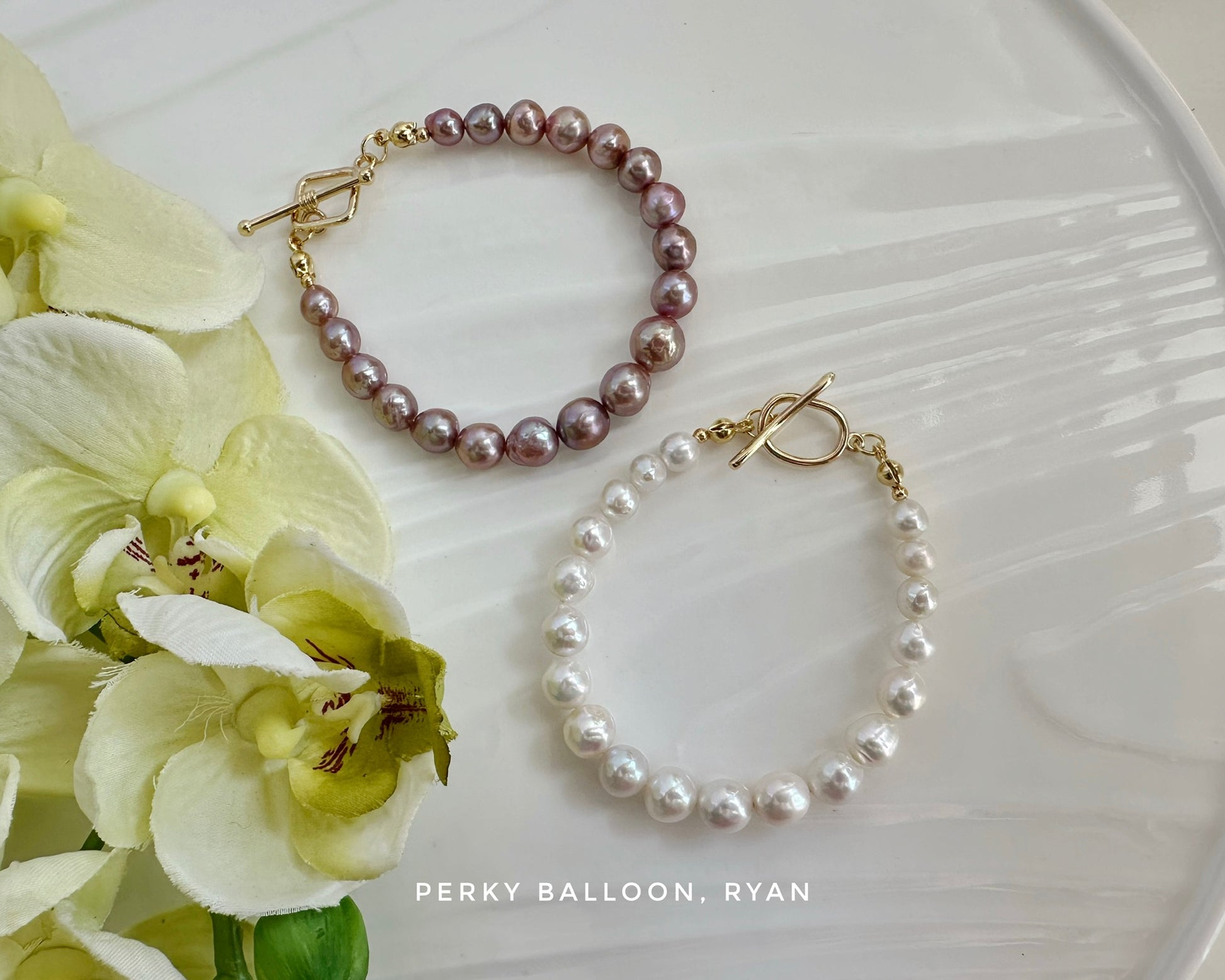 6-8mm近圓形巴洛克淡水珍珠,有白色/紫色,珍珠有幻彩閃爍感,加上佢唔係特別圓,有復古野生珍珠feel,手鏈內圈長度大約16 cm,訂做15 -18 cm價錢一樣