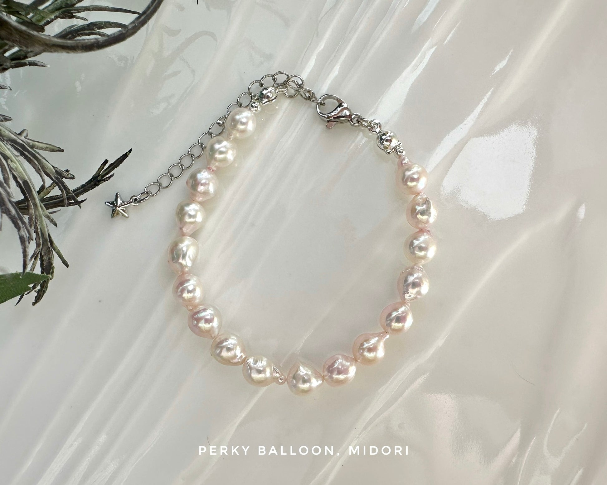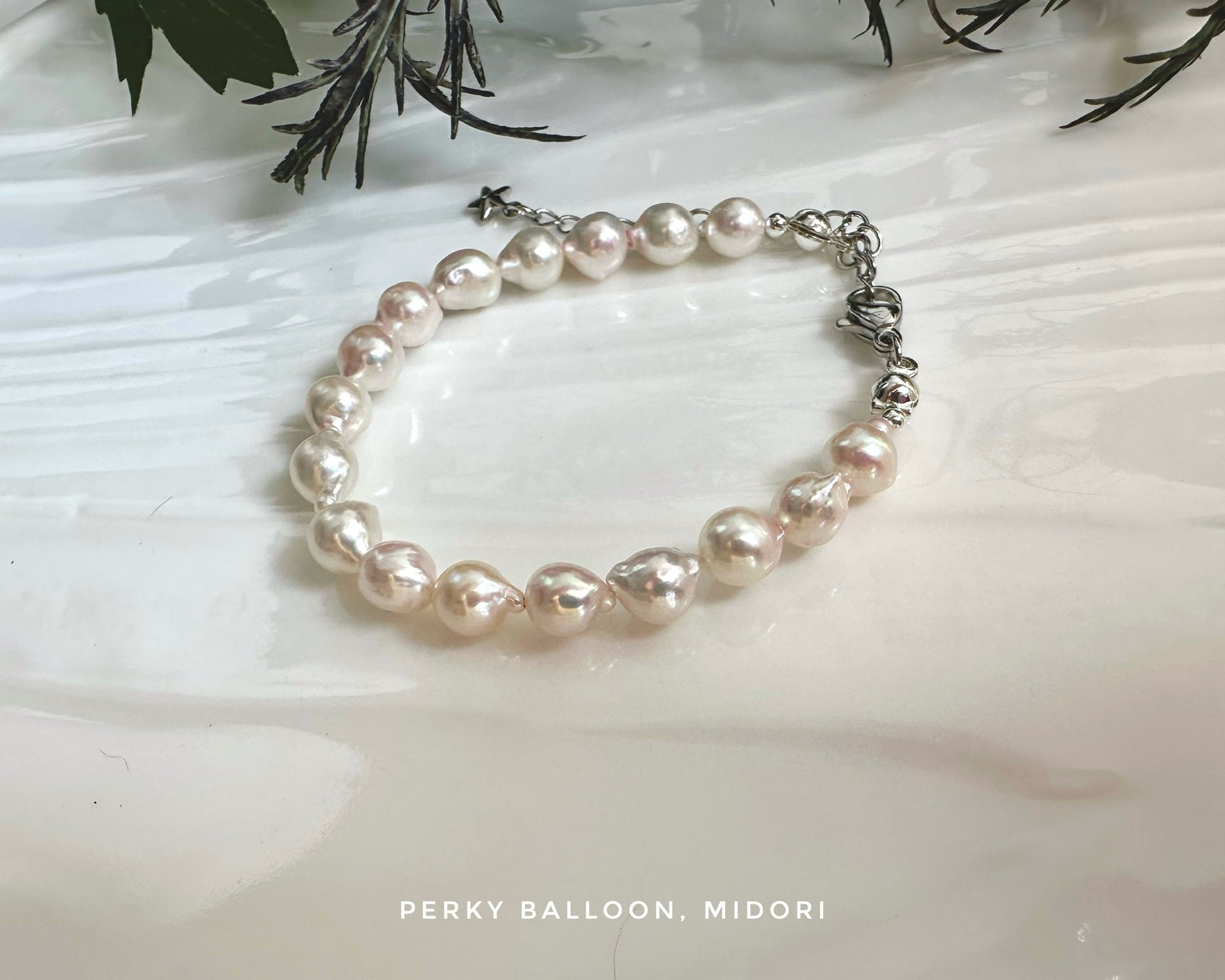 6-6.5mm 巴洛克日本Akoya,天然白透粉紅色,超強幻彩極光,手鏈連扣長約15 + 5 cm