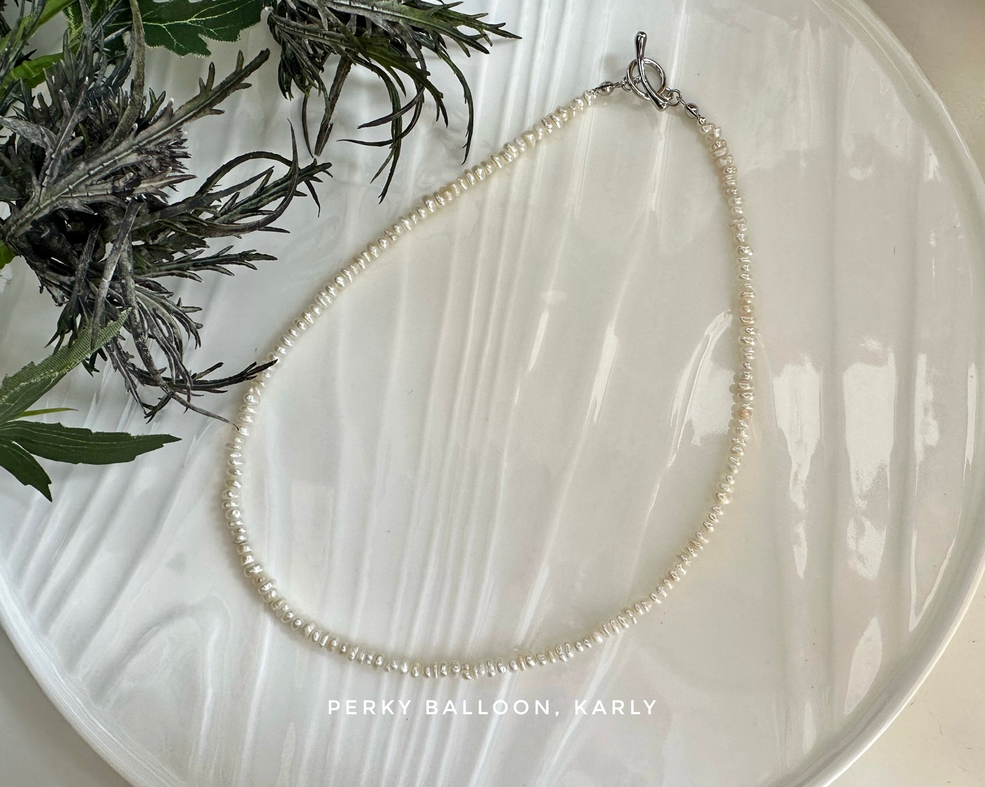~4 mm迷你巴洛克淡水珍珠,一條簡單易襯嘅珍珠頸鏈其實唔使好複雜,細細粒嘅珍珠,大大嘅閃爍感,成個造型即刻有層次感,頸鏈連扣長度大約40 cm