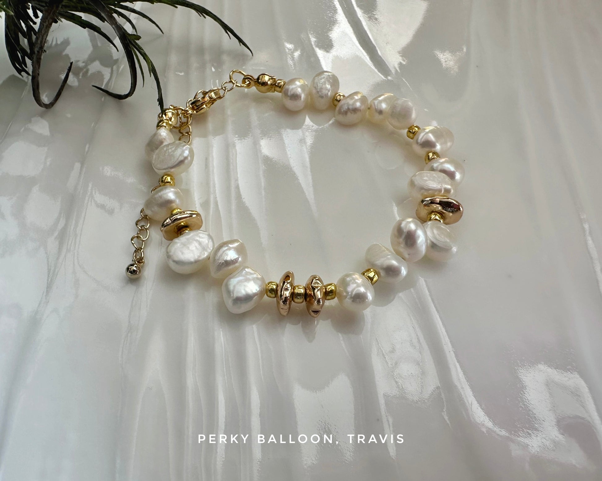 ~7mm 巴洛克淡水珍珠,穿起嘅感覺好似交錯嘅花瓣,手鏈連扣長度大約15+5 cm