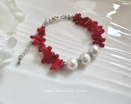 9-10 mm巴洛克淡水珍珠,4mm紅色珊瑚碎,手鏈連扣長度大約15+5 cm