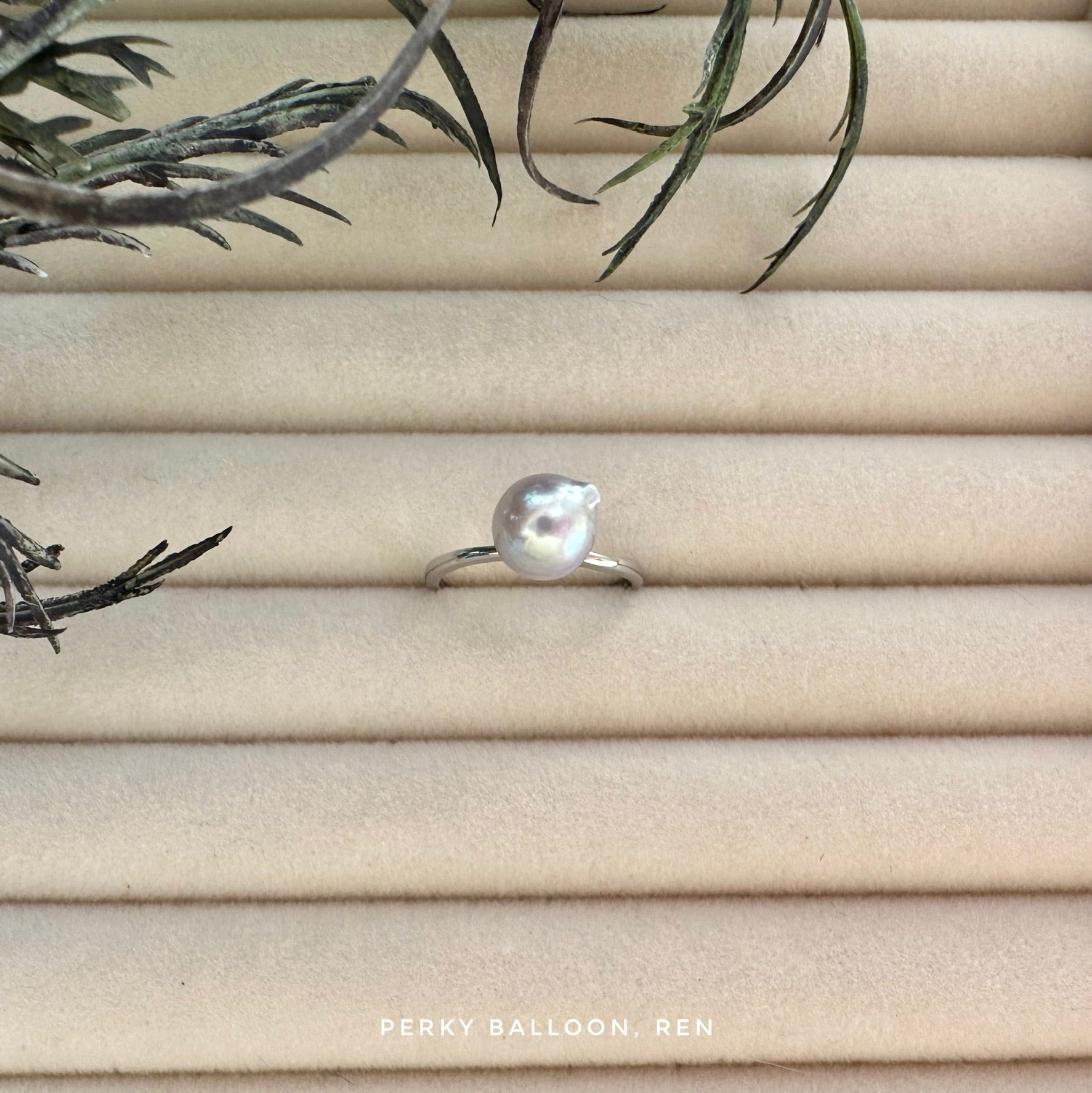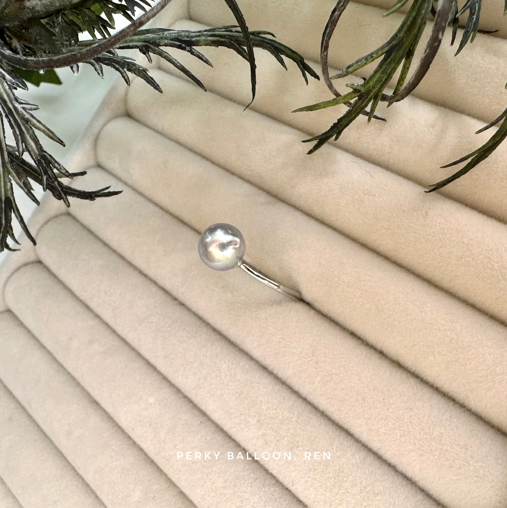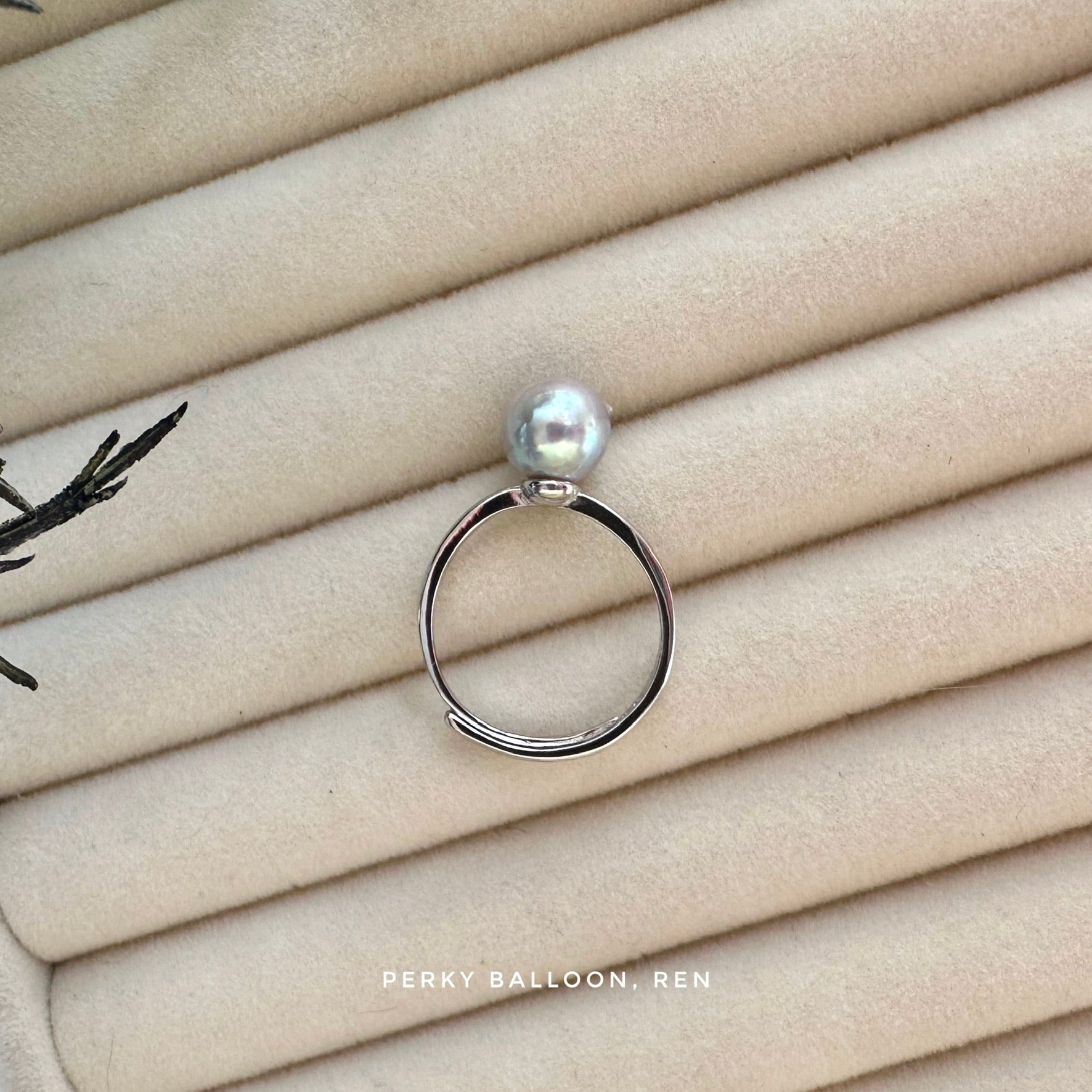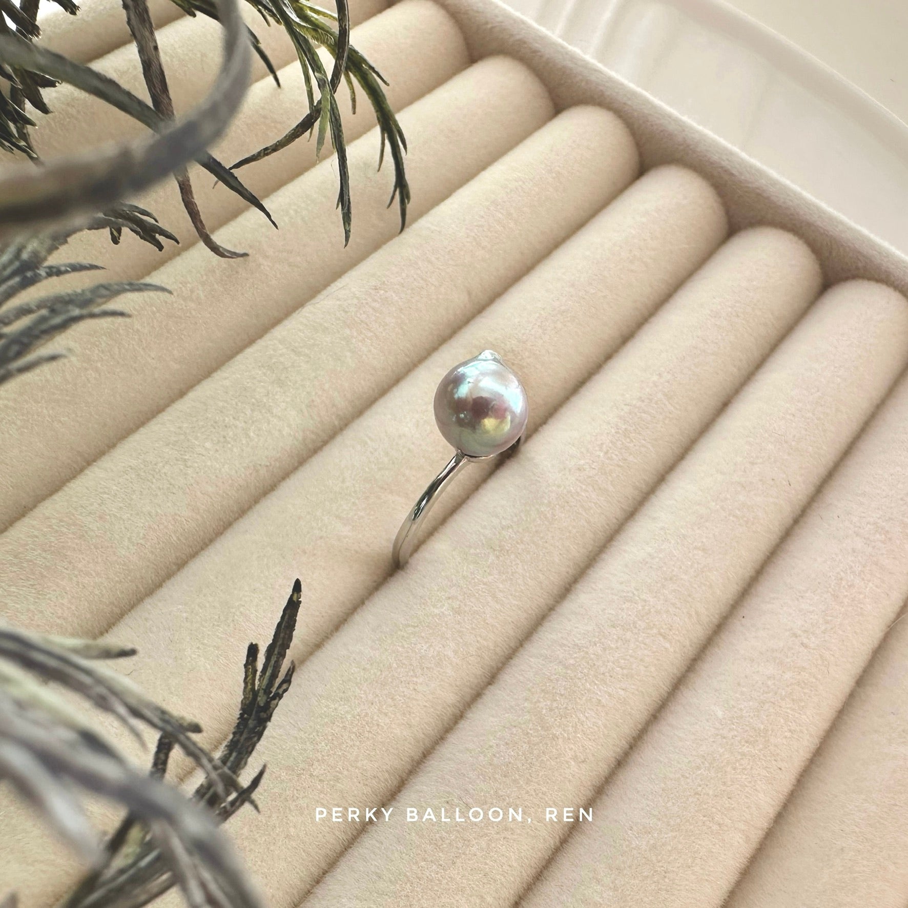 8mm日本Akoya,天然灰藍色幻彩,珍珠有小尖頭好似小飛俠阿童木嘅髮型特級可愛,925純銀開口戒指,尺寸可以自行調校