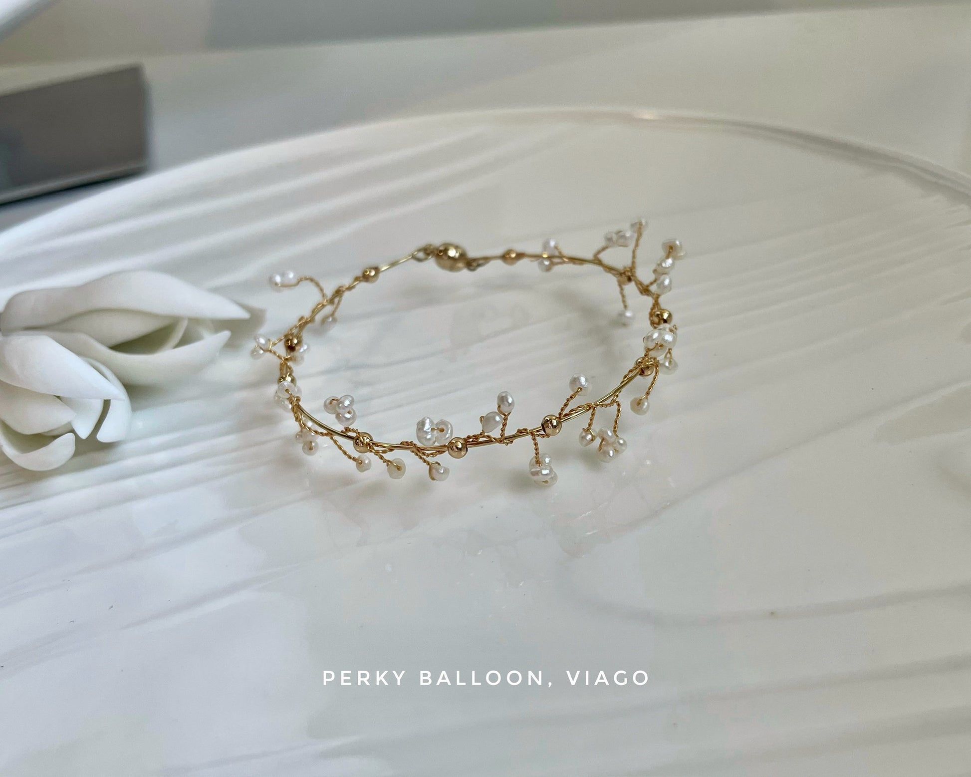 2-3mm巴洛克淡水珍珠,手工繞線花圈款,好仙,不鏽鋼鍍金記憶鋼絲定型手鈪,配磁石扣,適合手圈16 cm以內