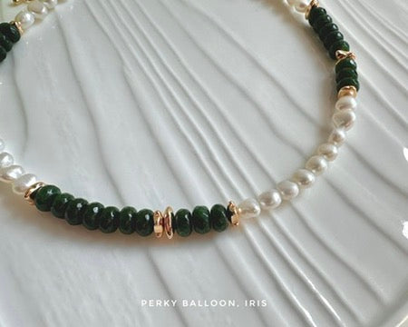 7-8mm 巴洛克淡水珍珠+深綠玉髓,頸鏈連扣長約40+ 5 cm