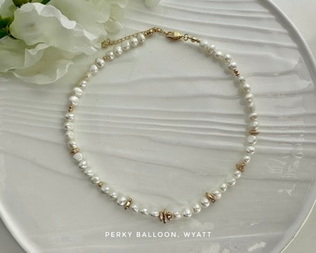 6-7mm巴洛克淡水珍珠+鍍金黑膽石,配件可以選金色/銀色,頸鏈連扣長度大約40+5 cm