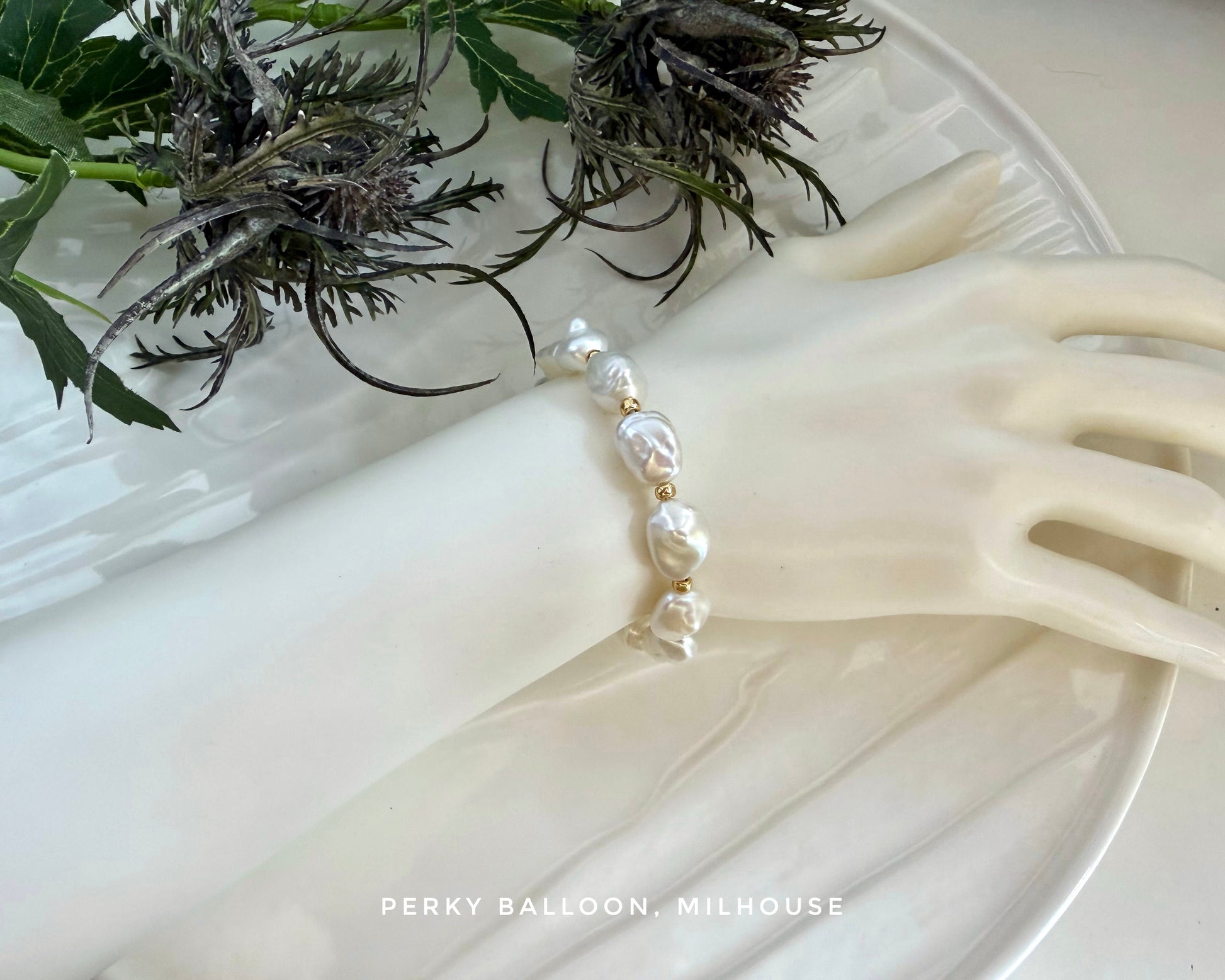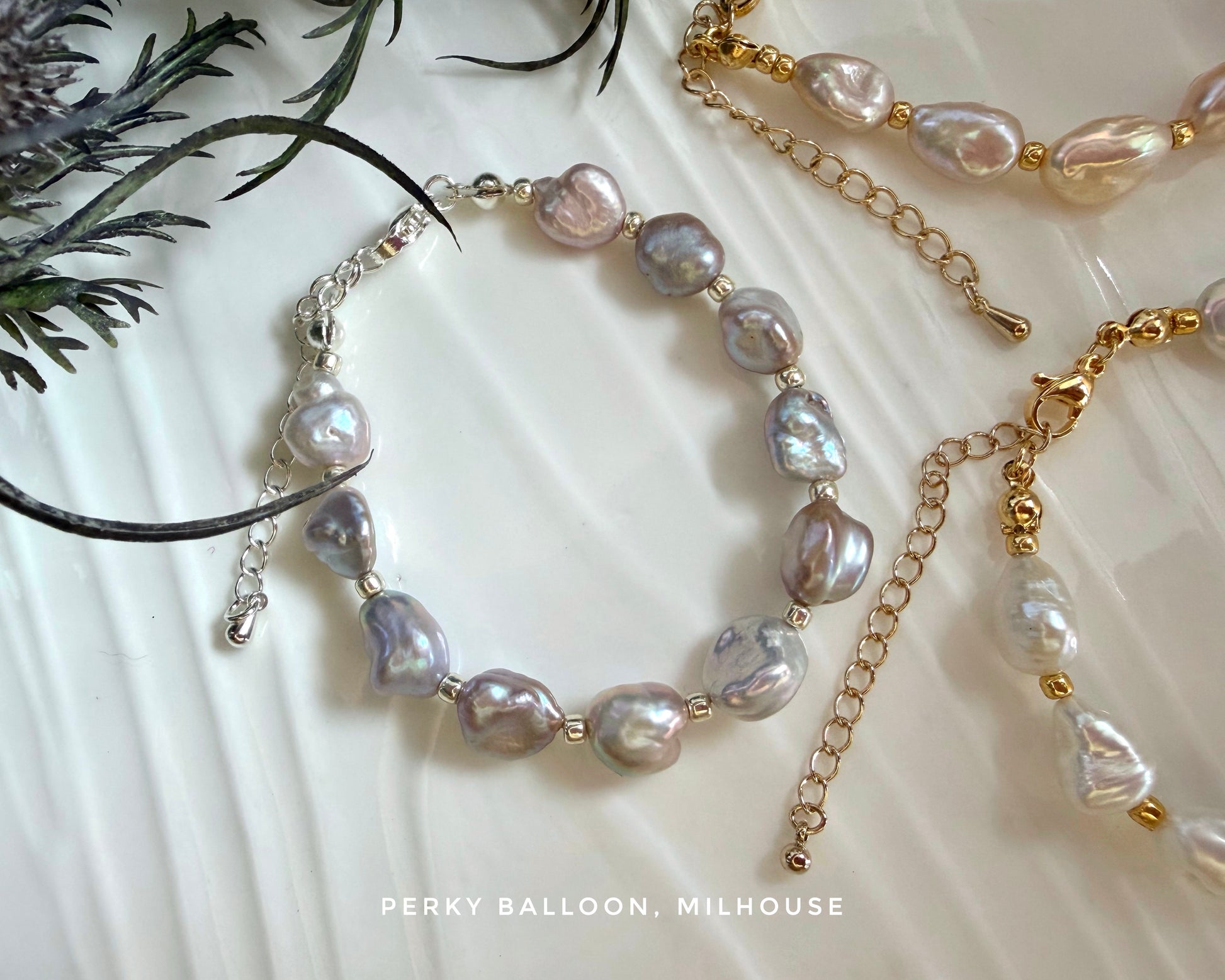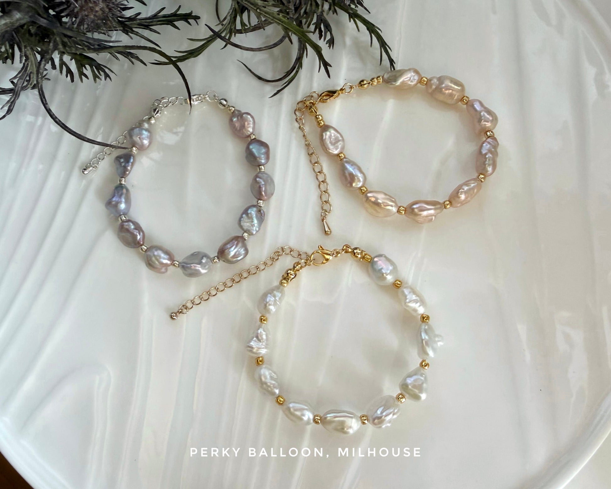 8-9mm 一嚿雲巴洛克淡水珍珠,有白色/金粉色/淺紫色,每種色都帶幻彩,手鏈連扣長度大約15+5cm